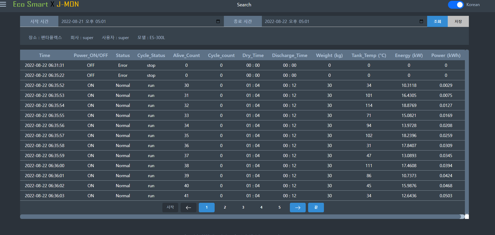 Vue3와 TypeScript, Rest API를 이용해 음식물처리기 모니터링 페이지를 구현한 것 입니다.